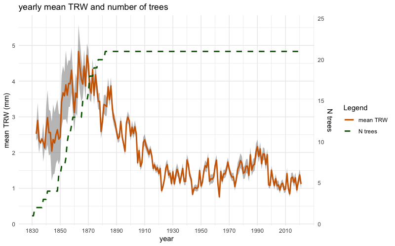 This example starts with downloading the files named “TRW_example.rwl” and “pith.offset.txt”, from the GitLab page of the package (see the folder “/main/studio/dati/”). For semplicity copy and paste these lines: