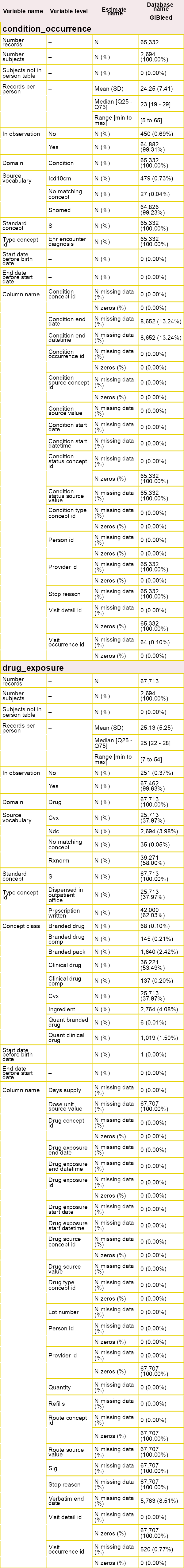 #> ℹ Summarising records with start before birth date in condition_occurrence.