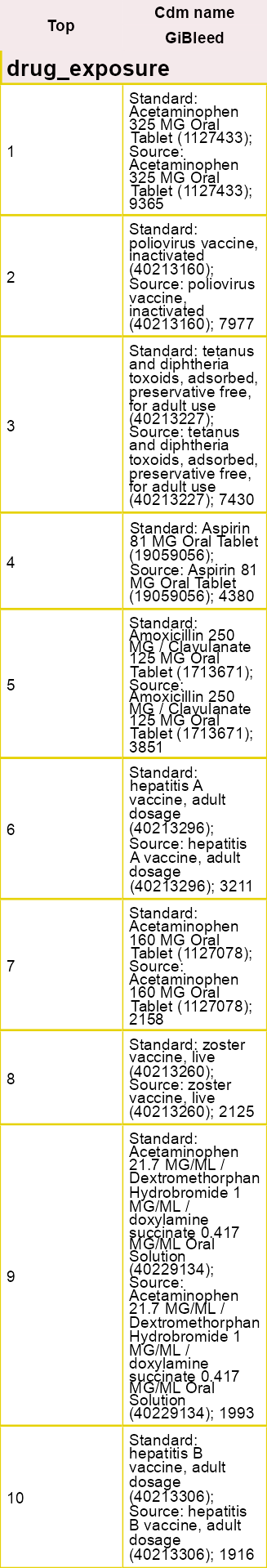 #> ℹ Summarising source vocabularies in drug_exposure.