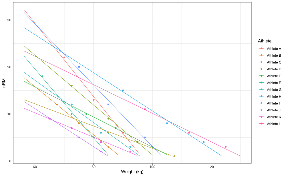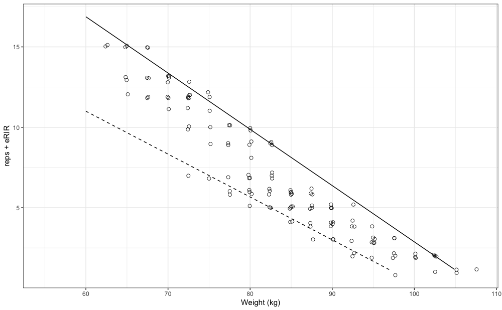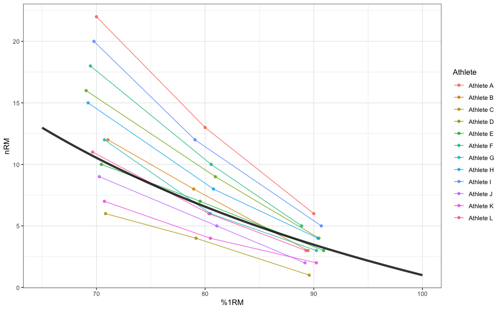 library(STMr)Reps-Max functions map the relationship between %1RM and maximum