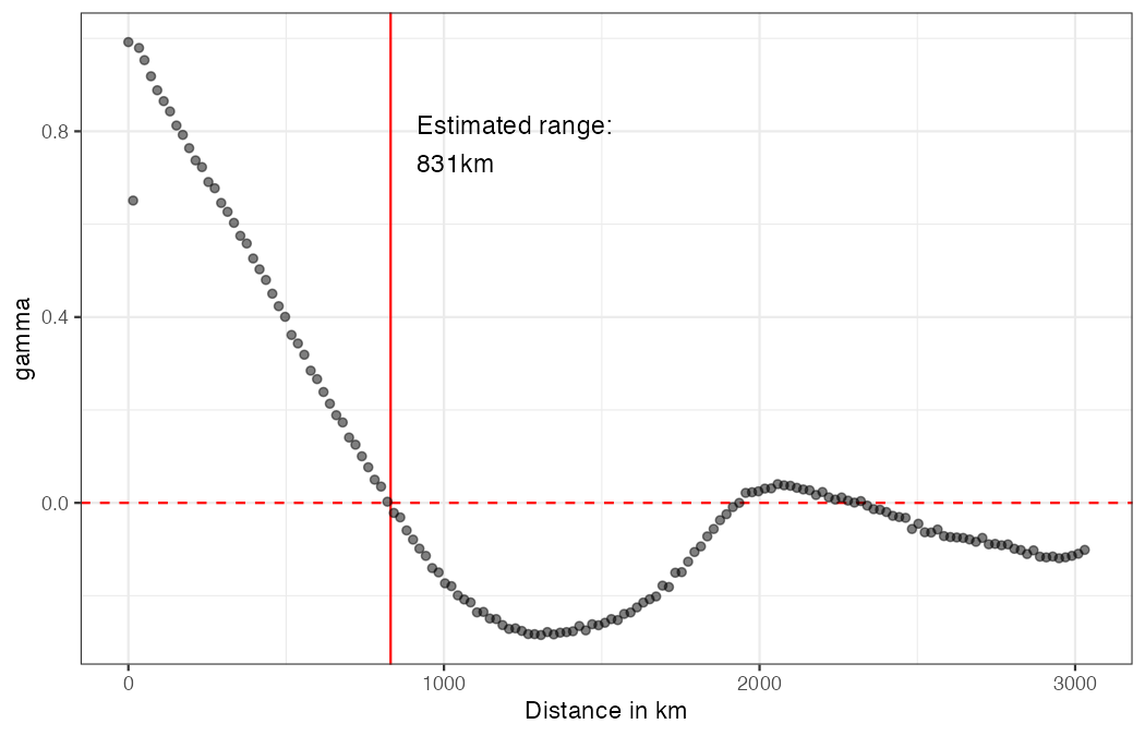 # 1. Estimate the correlation range from the covariogram