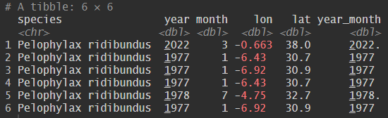 ranidae$year_month <- ranidae$year + ((ranidae$month - 1) / 12)