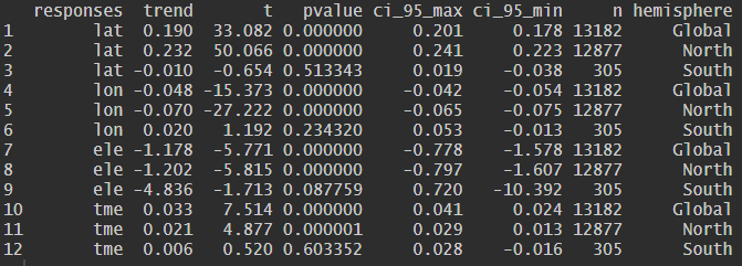 spp_strategy_result <- spp_strategy(spp_trend_result, sig_level = 0.05/length(spp), responses = c("lat", "lon", "ele", "tme"))