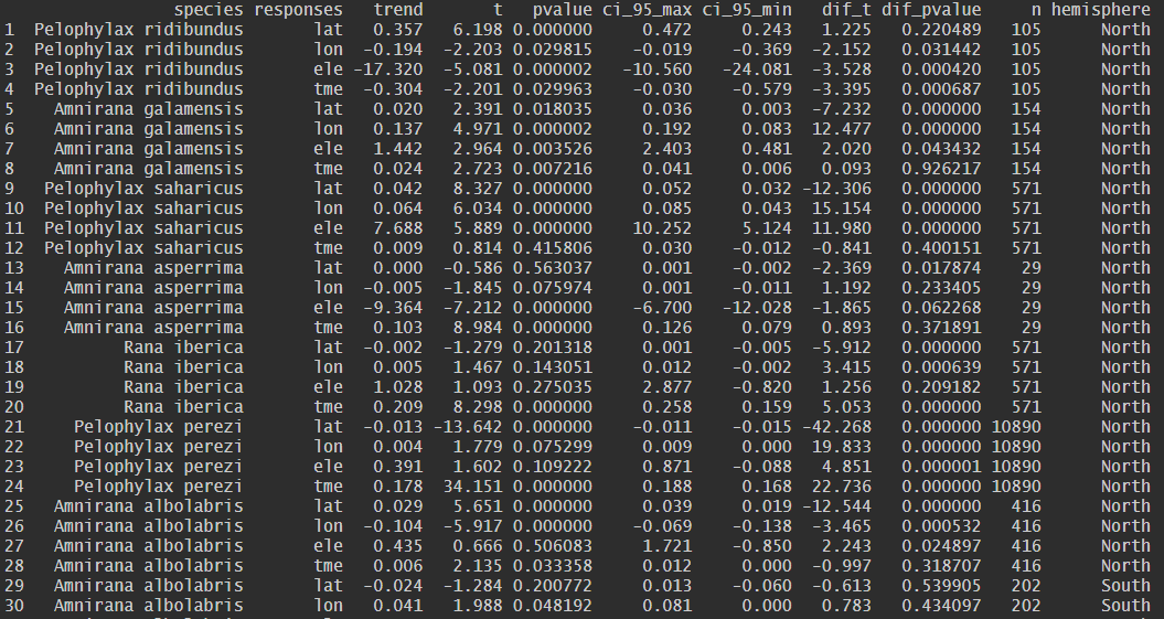 spp_trend_result <- spp_trend(ranidae, spp, predictor, responses, n_min = 10)