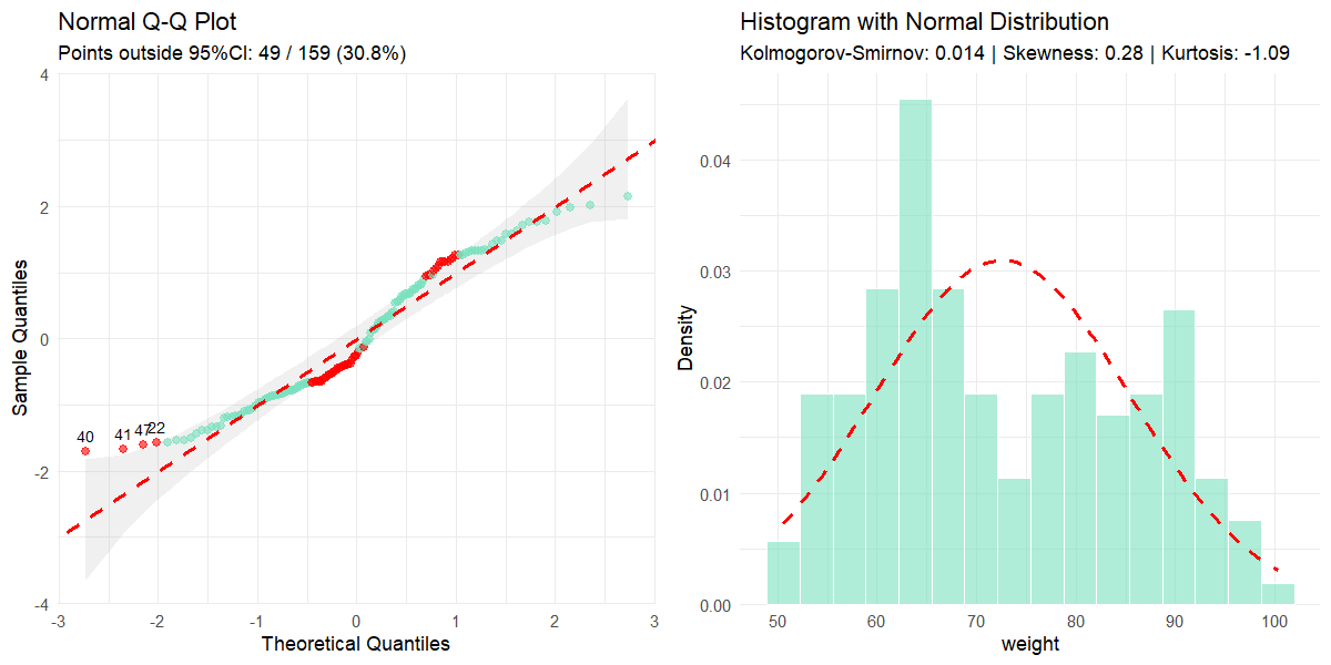 Character string indicating the normality test to use: ‘S-W’ for Shapiro-Wilk or ‘K-S’ for Kolmogorov-Smirnov. | 'S-W' |