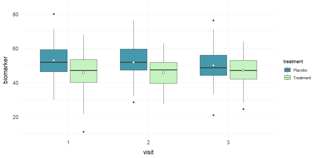 plot_box(clinical_df, x = "treatment", y = "biomarker", group = "treatment")