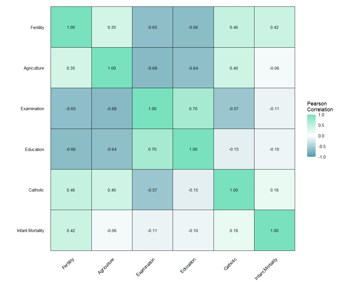 plot_corr(data = swiss, type = "lower", show_sig = TRUE, sig_only = TRUE)