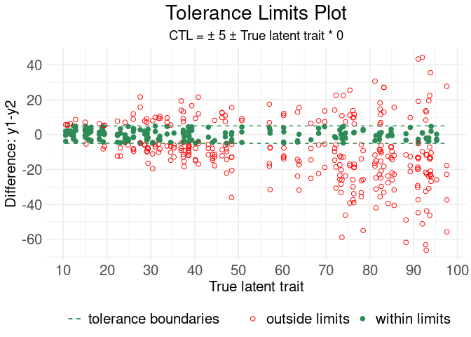 #> Constant tolerance limits specified: intercept= 5& slope= 0