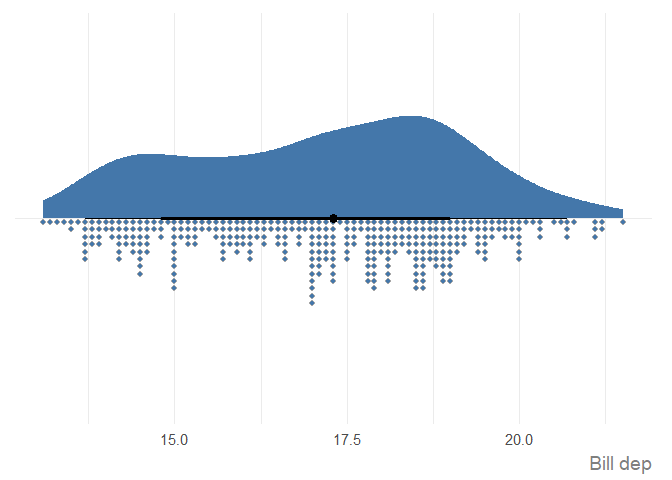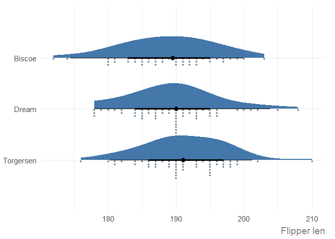 If you have multiple categories, and you want to visualise the distribution for each of them, i.e., you have one discrete variable, and one continuous variable, then multiple raincloud plots are produced.