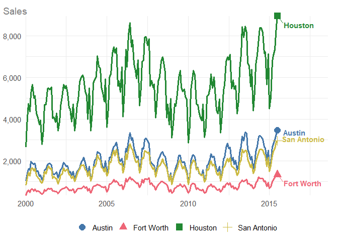 dplyr::filter(city %in% c("Houston", "Fort Worth", "San Antonio", "Austin")) |>