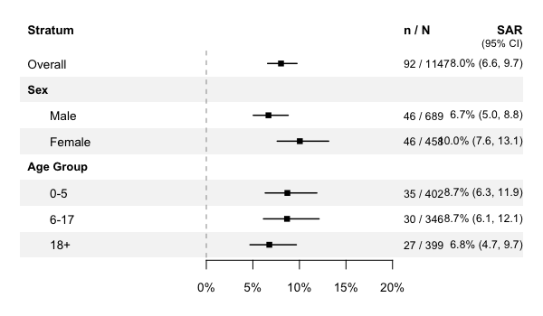 # Secondary attack rates with Wilson CIs
