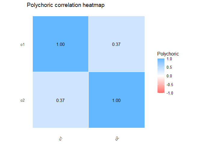 categorical/ordinal correlations (tetrachoric, polychoric, polyserial,