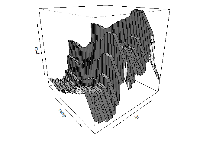 persp(mid_1$fit, "temp:hr", theta = 50, phi = 20, shade = .5)