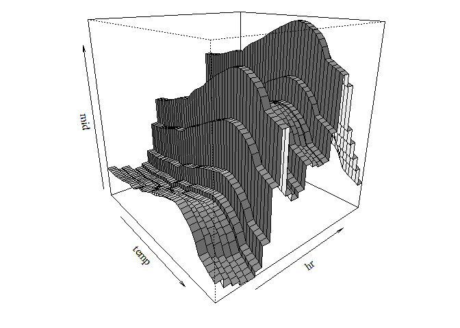 persp(mid_2$fit, "temp:hr", theta = 50, phi = 20, shade = .5)
