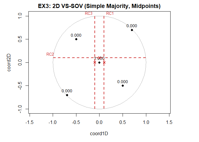 vw <- rep(1, nrow(ideals))As a reminder, this example illustrates a case with three voters in a