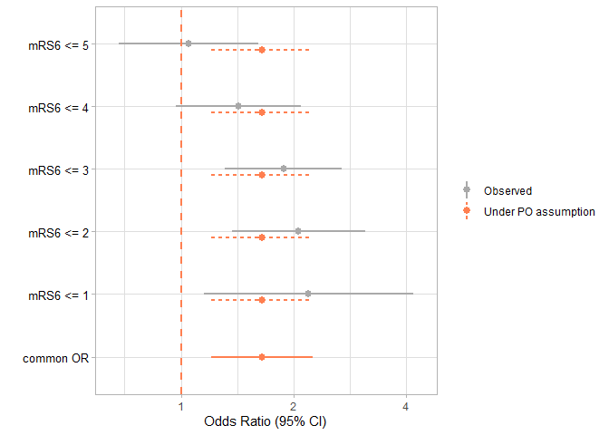 #> | mRS6 <= 1 | 2.056 | 1.196 | 3.534 | Observed |