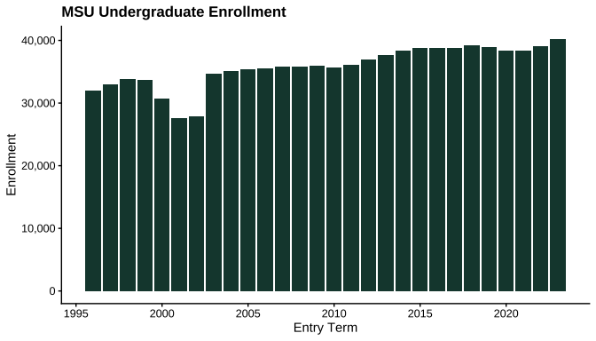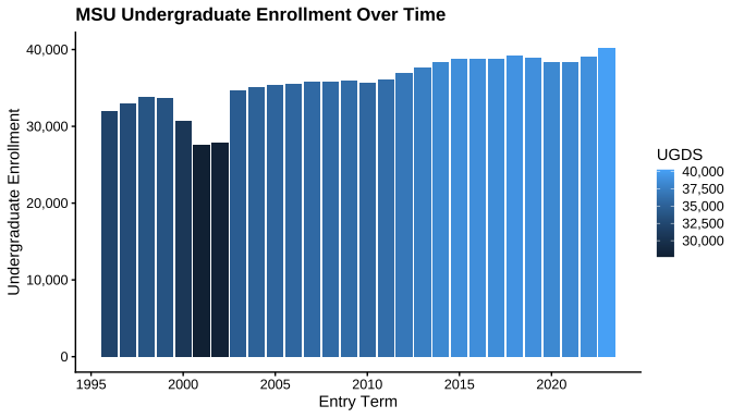 labs(title = "MSU Undergraduate Enrollment Over Time",