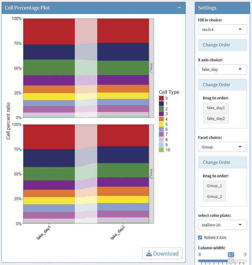 applicationgetColors(): Get color palettes for visualizationcellRatioPlot(): Create stacked bar plots showing cell