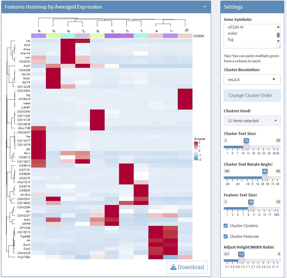 A: Yes! Most visualizations can be downloaded as PDF files. Analysis results (DEGs, feature summaries, etc.) can be downloaded as CSV files. Cluster name mappings can also be exported.