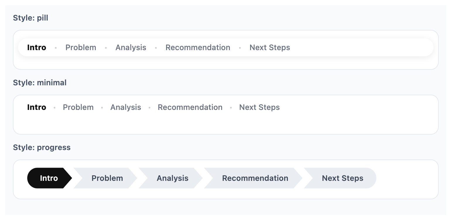 built-in styles, including pill, minimal, and
