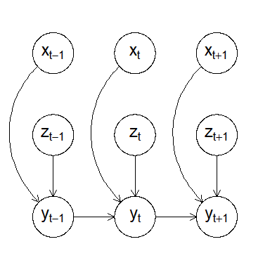 install.packages("dynamite", repos = "https://ropensci.r-universe.dev")A single-channel model with time-invariant effect of z,