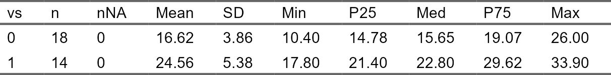 #> vs n nNA Mean SD Min P25 Med P75 Max