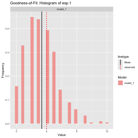 Here is an assessment of the goodness-of-fit to the edgewise shared partner 1 statistic: