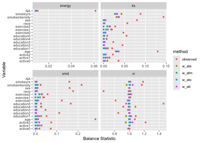 devtools::install_github("r-causal/halfmoon")halfmoon includes several techniques for assessing the balance created by propensity score weights.