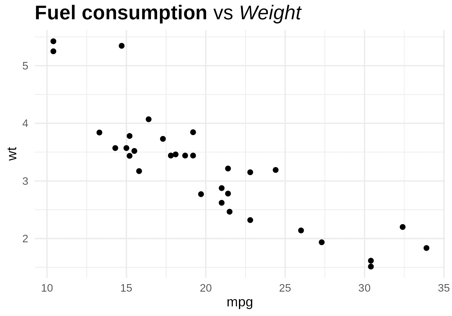 p1 <- ggplot(mtcars, aes(mpg, wt)) +