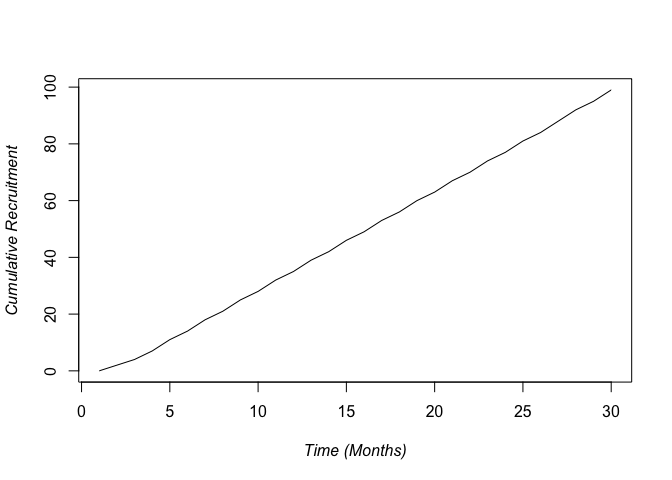 recF <- recForcast(N.site,rpm,open.rate,Max.Time=recTime) #100 patients over 30 months