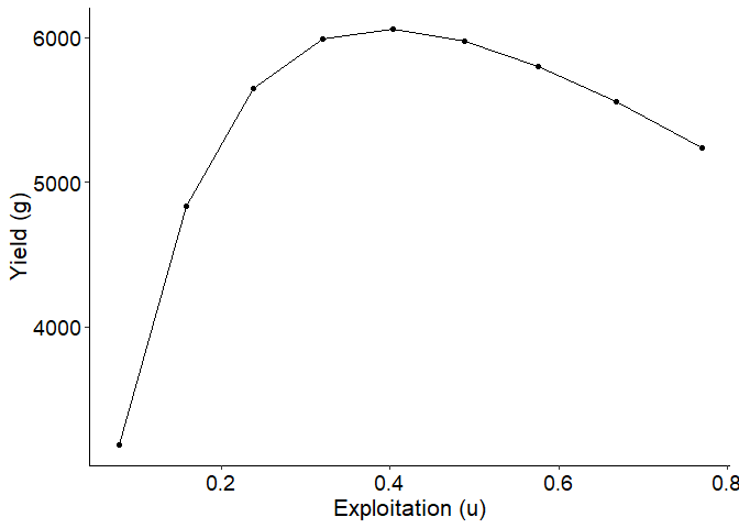 labs(y="Yield (g)",x="Exploitation (u)") +