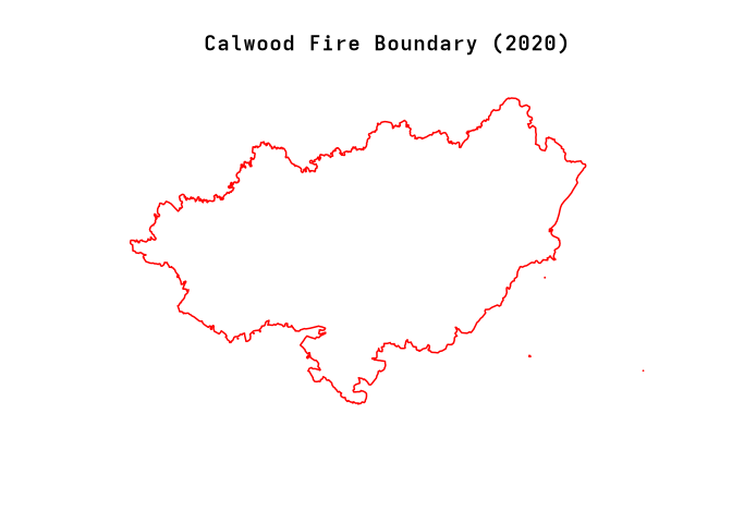 plot(boundary$geometry, main = "Calwood Fire Boundary (2020)",