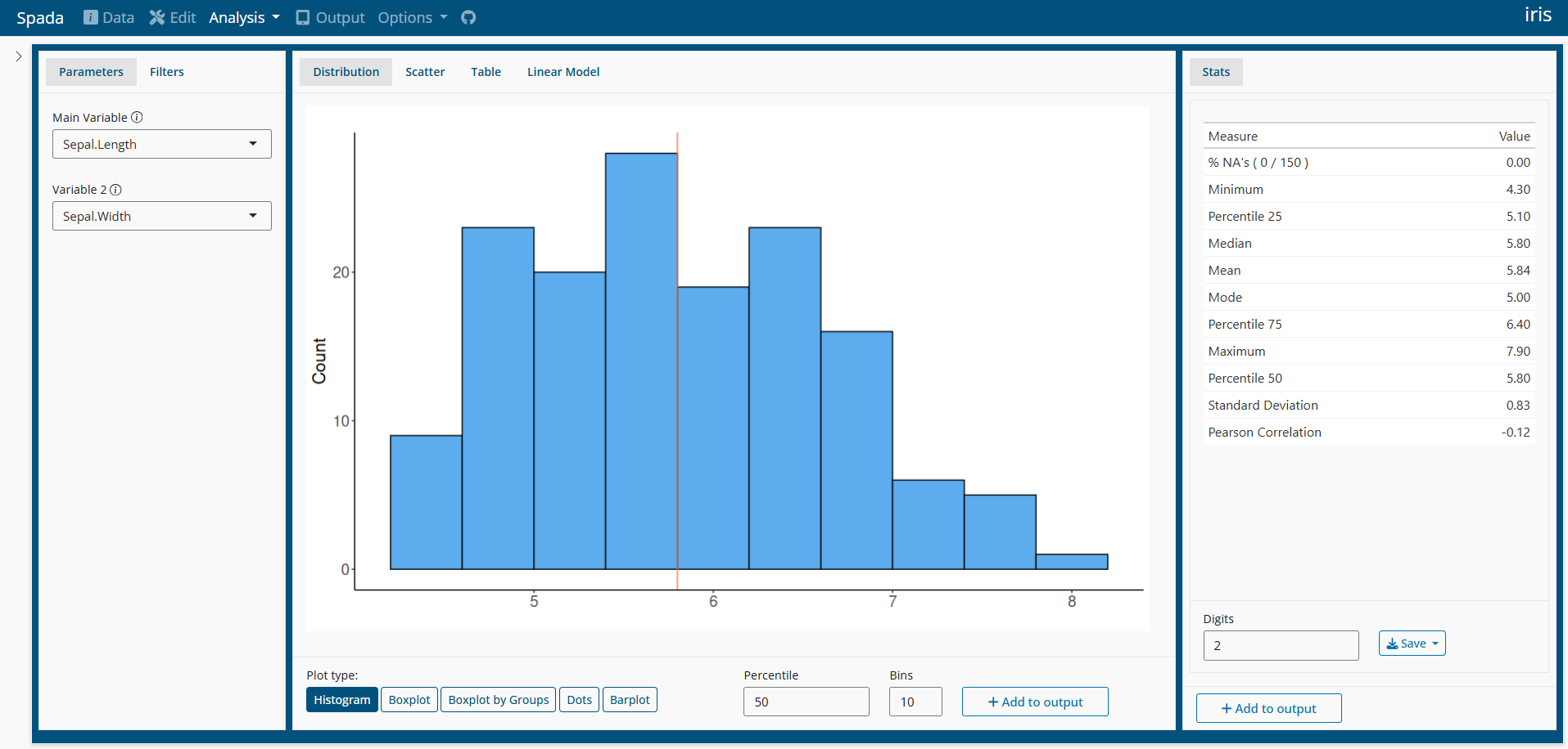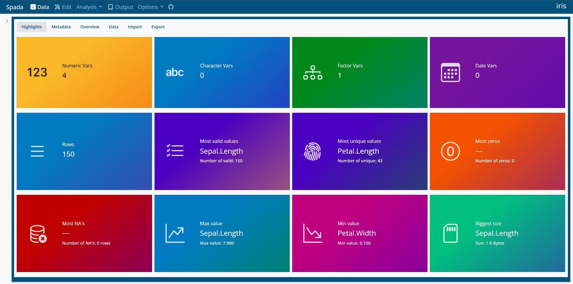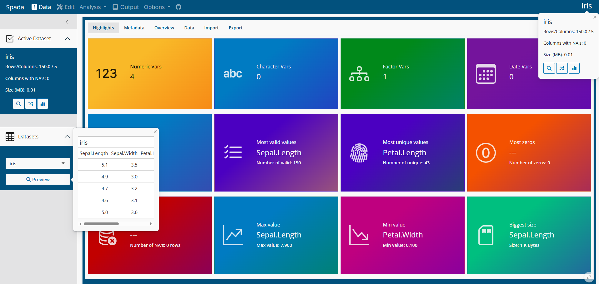 The goal of spada is to provide visual tools for Data Analysis in a Shiny App.