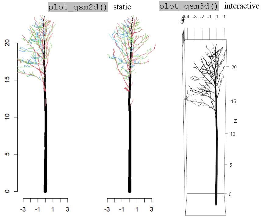 This section provides functions to generate diagnostic plots that help visualize tree point clouds, QSMs, and related metrics to identify potential errors or assess data quality.